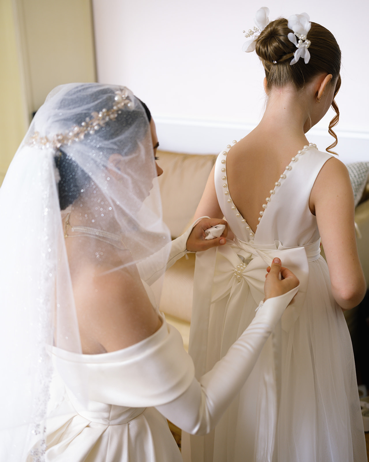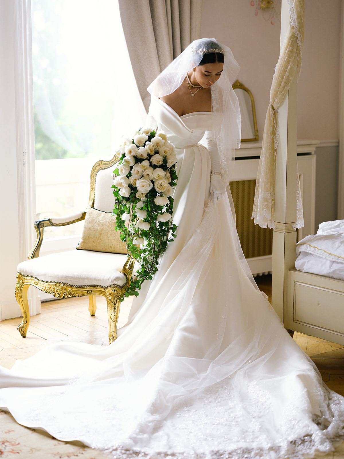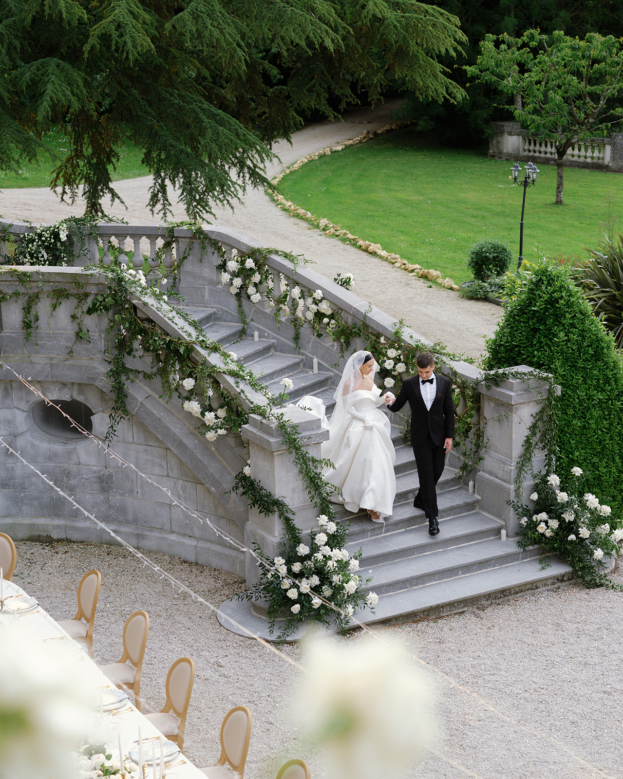 Вперше Юлія та Олександр побачили одне одного саме на церемонії.Це був найочікуваніший і найемоційніший момент. Французьке шато, оповите квітами, помпезні сходи, вкриті квітами, звучання живого роялю і наречена спускається сходами до свого коханого,